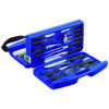 Mallette fermee : L45xl13xH31 cm. Mallette ouverte : L45xl62 cm. Compacte. Contenu: 4 faces de rangement pouvant accueillir couteaux, spatules, douille